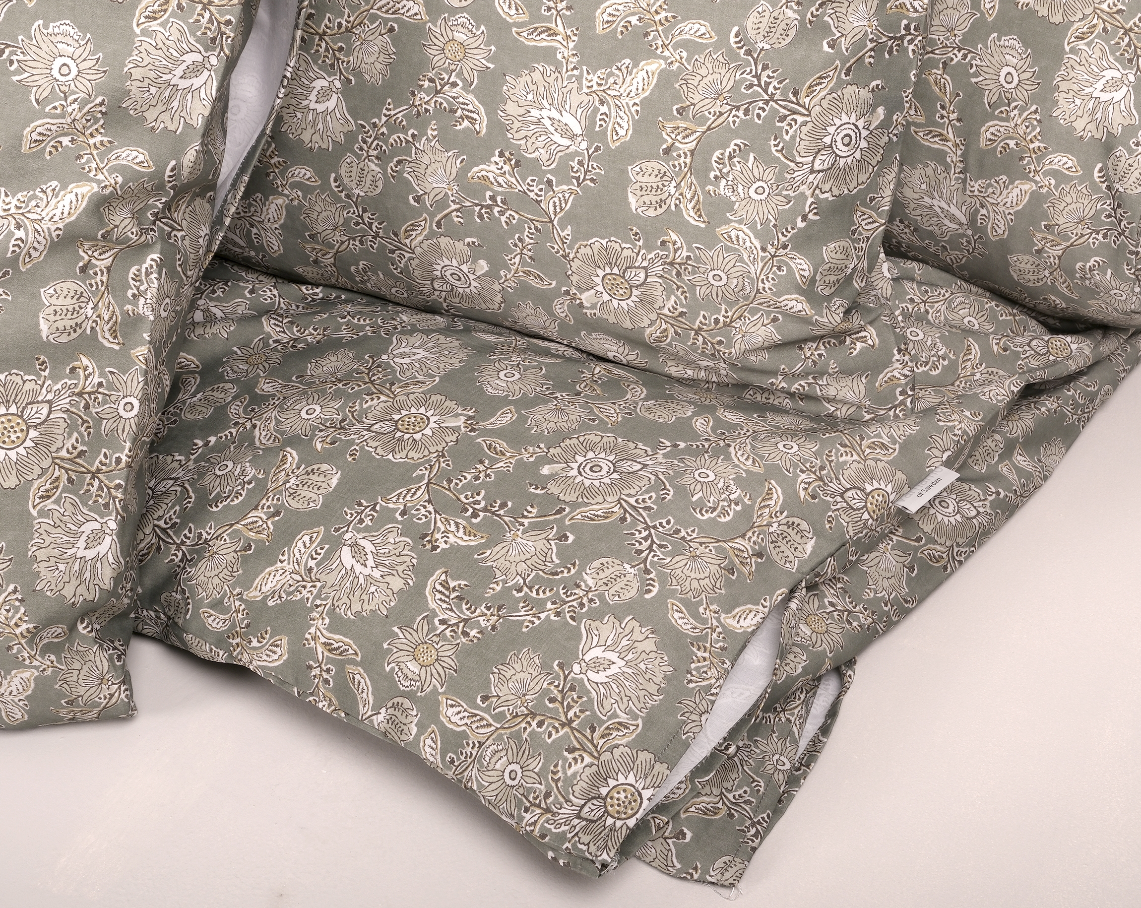 Almvik är ett påslakanset i 100% bomullssatin (272 TC) med lyster och ett småblommigt mönster. Setet är digitaltryckt för tydlig färg- och detaljåtergivning, och påslakanet har handhål i hörnen för smidigare påträdning. Setet finns i två färger – grön och vit. Båda finns som 3-dels set.