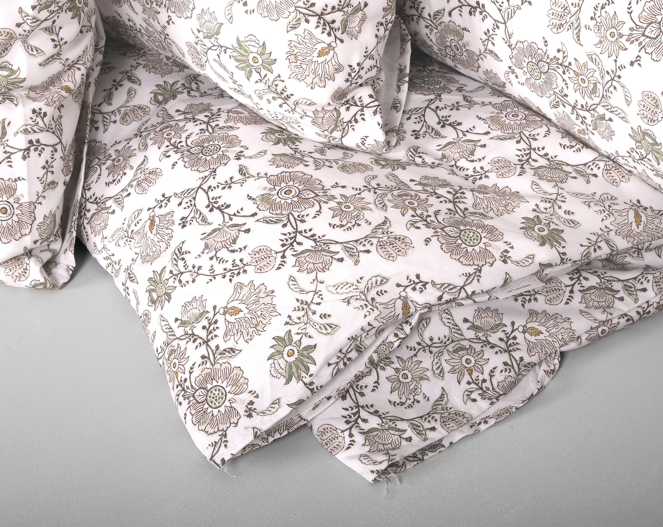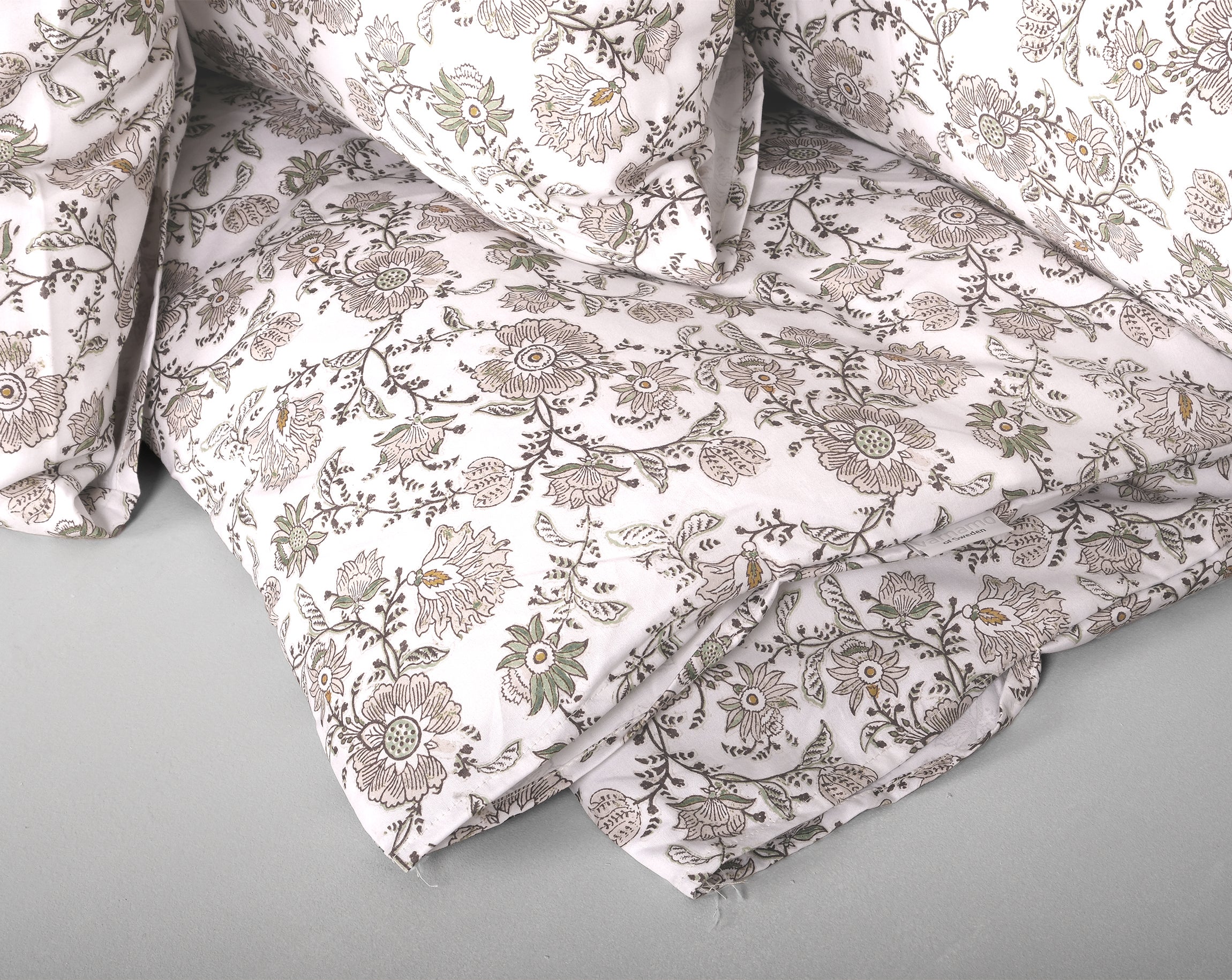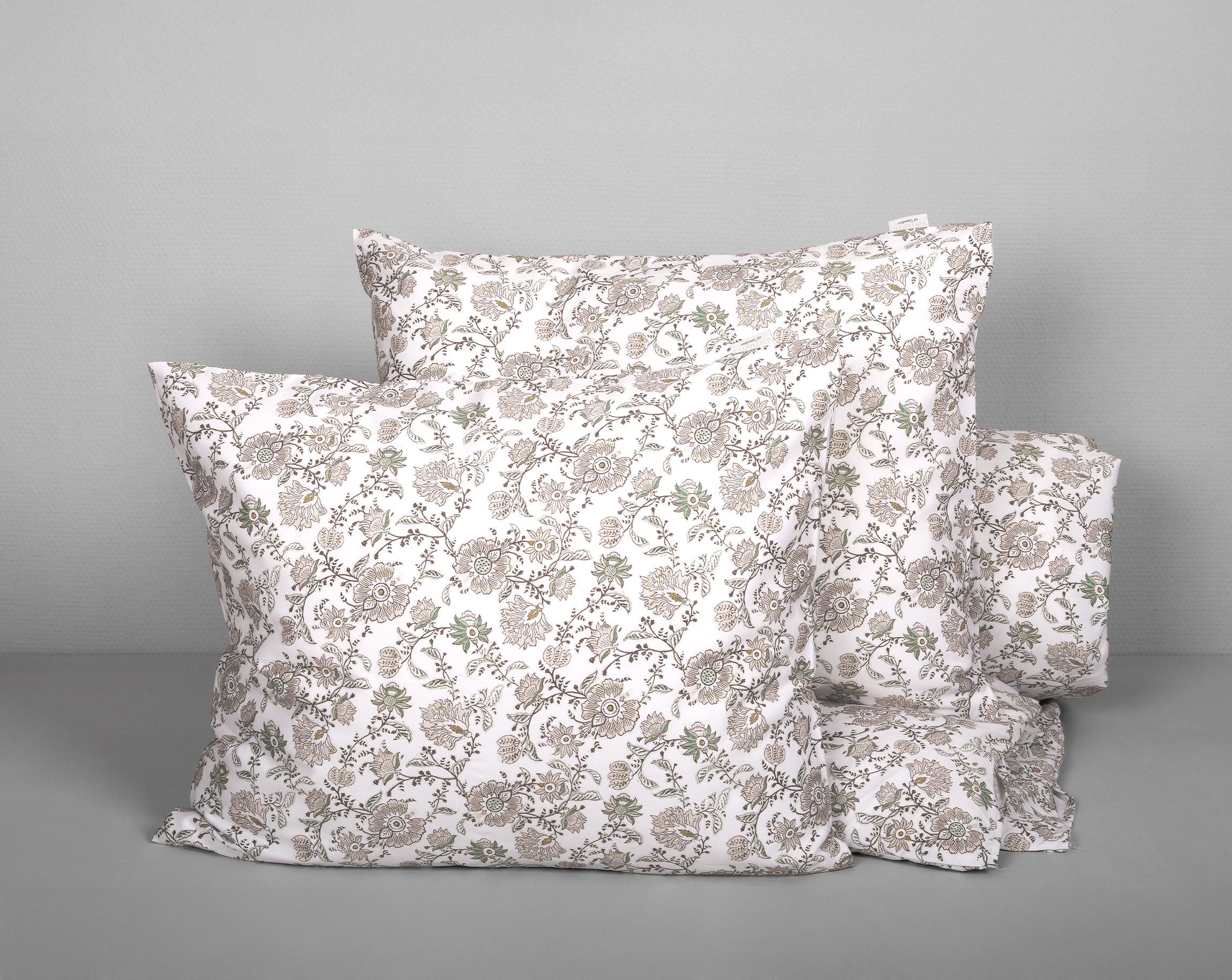 Almvik är ett påslakanset i 100% bomullssatin (272 TC) med lyster och ett småblommigt mönster. Setet är digitaltryckt för tydlig färg- och detaljåtergivning, och påslakanet har handhål i hörnen för smidigare påträdning. Setet finns i två färger – grön och vit. Båda finns som 3-dels set.