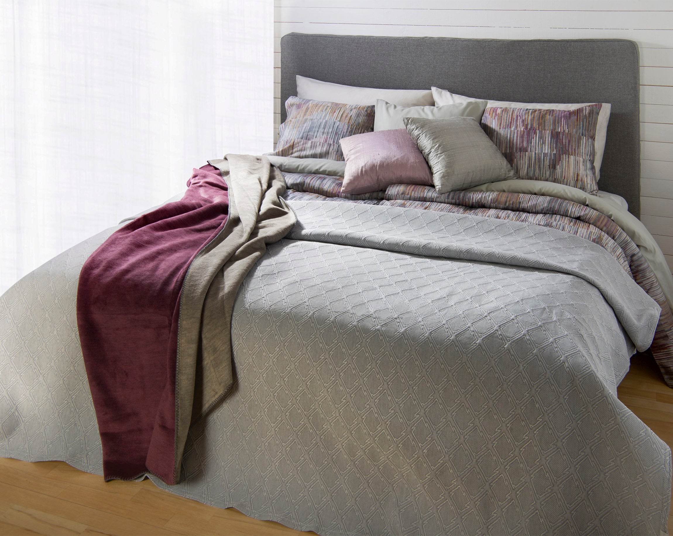 Lovis finns i två nyanser, grå och linnefärg – noggrant utvalda för att smälta in i ett lugnt och stilrent sovrum.