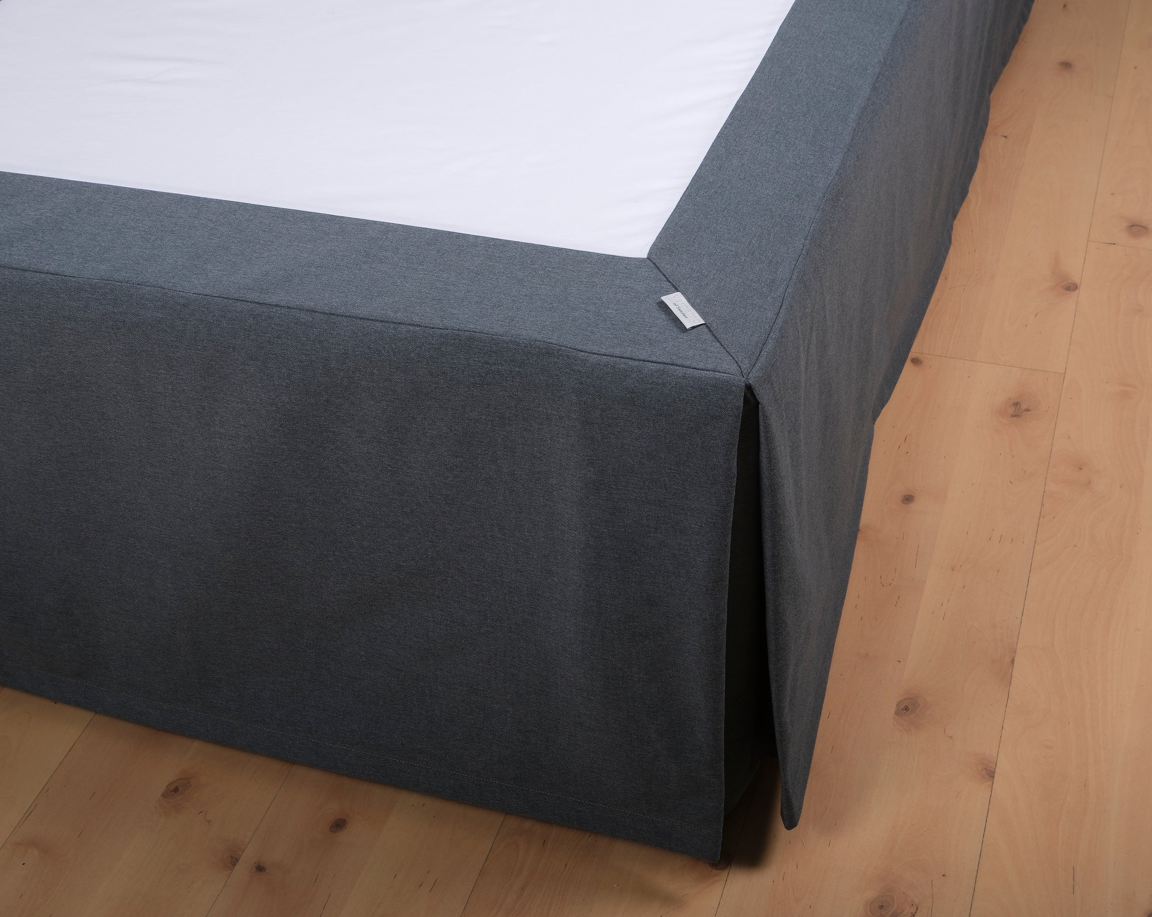 Motveck längs långsidorna och i fotändans hörn gör att sängkjolen behåller sitt fall oavsett sängens position.