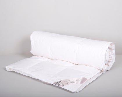 Att välja det perfekta täcket kan vara svårt. Om du önskar lite hjälp på traven kan du läsa vår guide Att välja rätt täcke. Hos oss hittar du svensktillverkade fibertäcken i olika värmegrader. Vi har både sköna svala täcken, perfekt för dig som är varm eller under varma sommarkvällar. Varma täcken för dig som är frusen eller för kalla vinternätter. Vi har även mediumvarma täcken för dig som vill ha samma täcke året runt. I vårt sortiment finns också våra fantastiska duntäcken, dessa är tillverkade i Danmark.